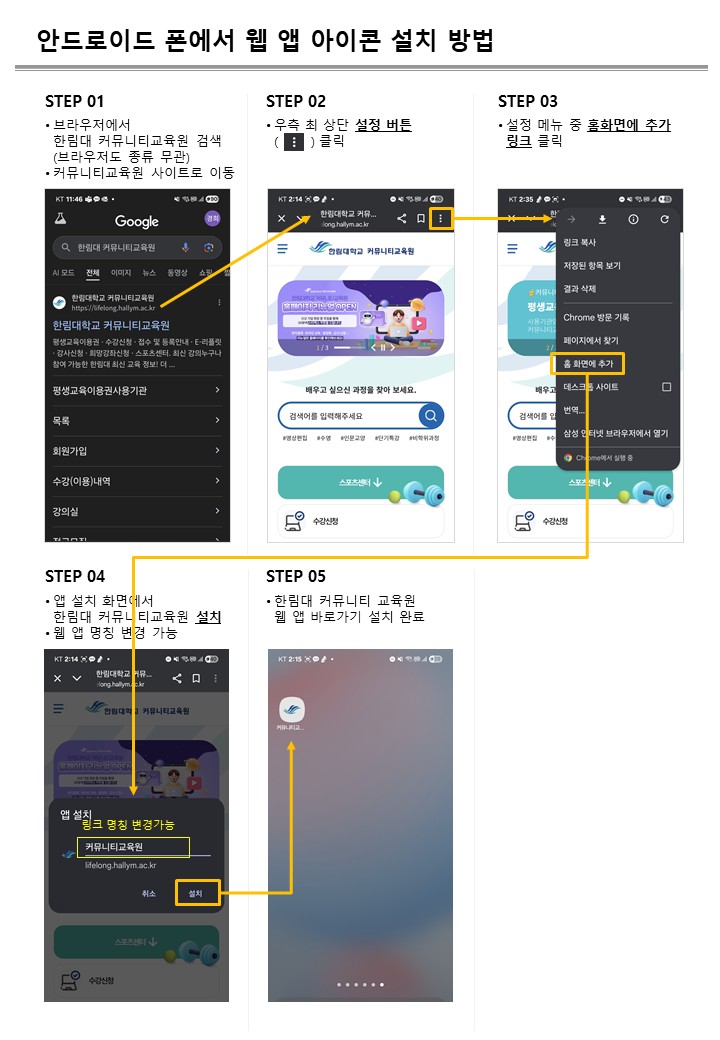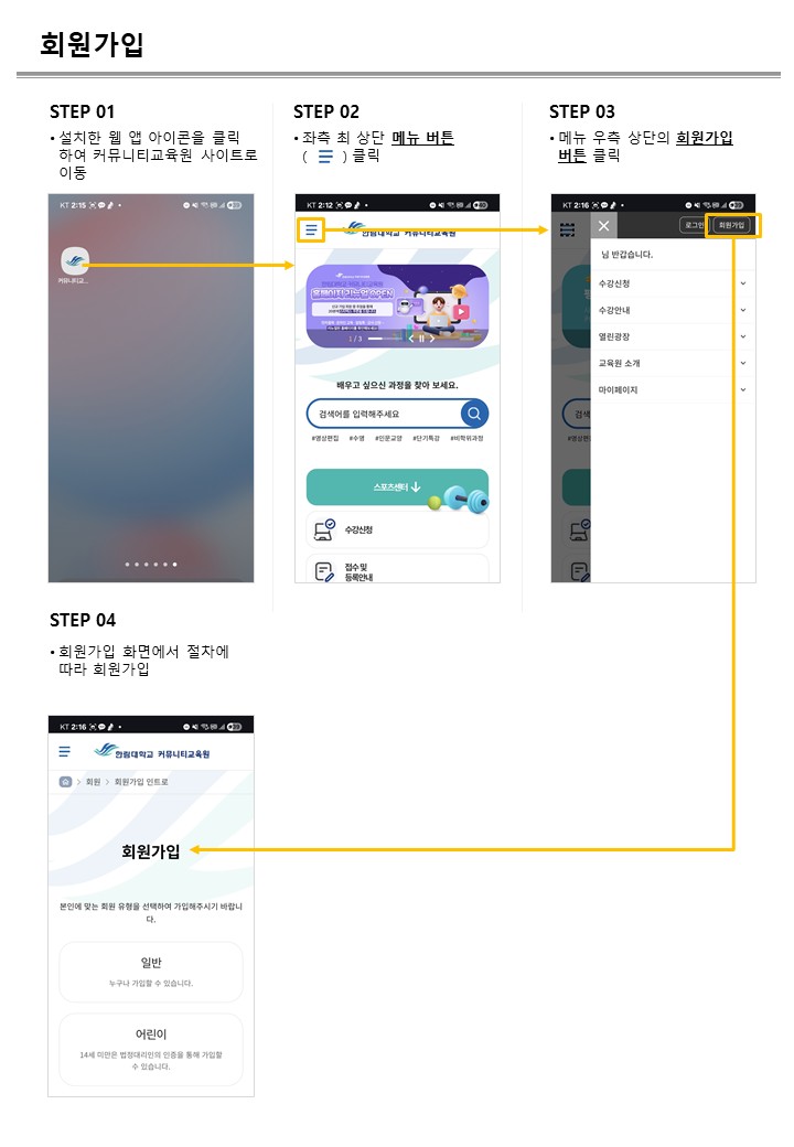 1. 모바일 아이콘 설치 방법 - 안드로이드 폰에서 설치하는 법 - 아이폰에서 설치하는 법 2. 회원가입 방법