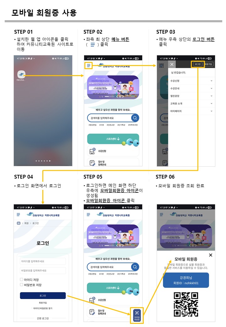 1. 모바일 아이콘 설치 방법 - 안드로이드 폰에서 설치하는 법 - 아이폰에서 설치하는 법 2. 회원가입 방법 3. 모바일 회원증 사용 방법